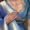A graceful Paithani tissue silk saree featuring a rich teal blue body with a soft golden shimmer. Accented with a traditional Paithani pallu showcasing elegant bird and floral motifs, and finished with a delicate gold zari border. Lightweight, luxurious, and perfect for festive and special occasions.